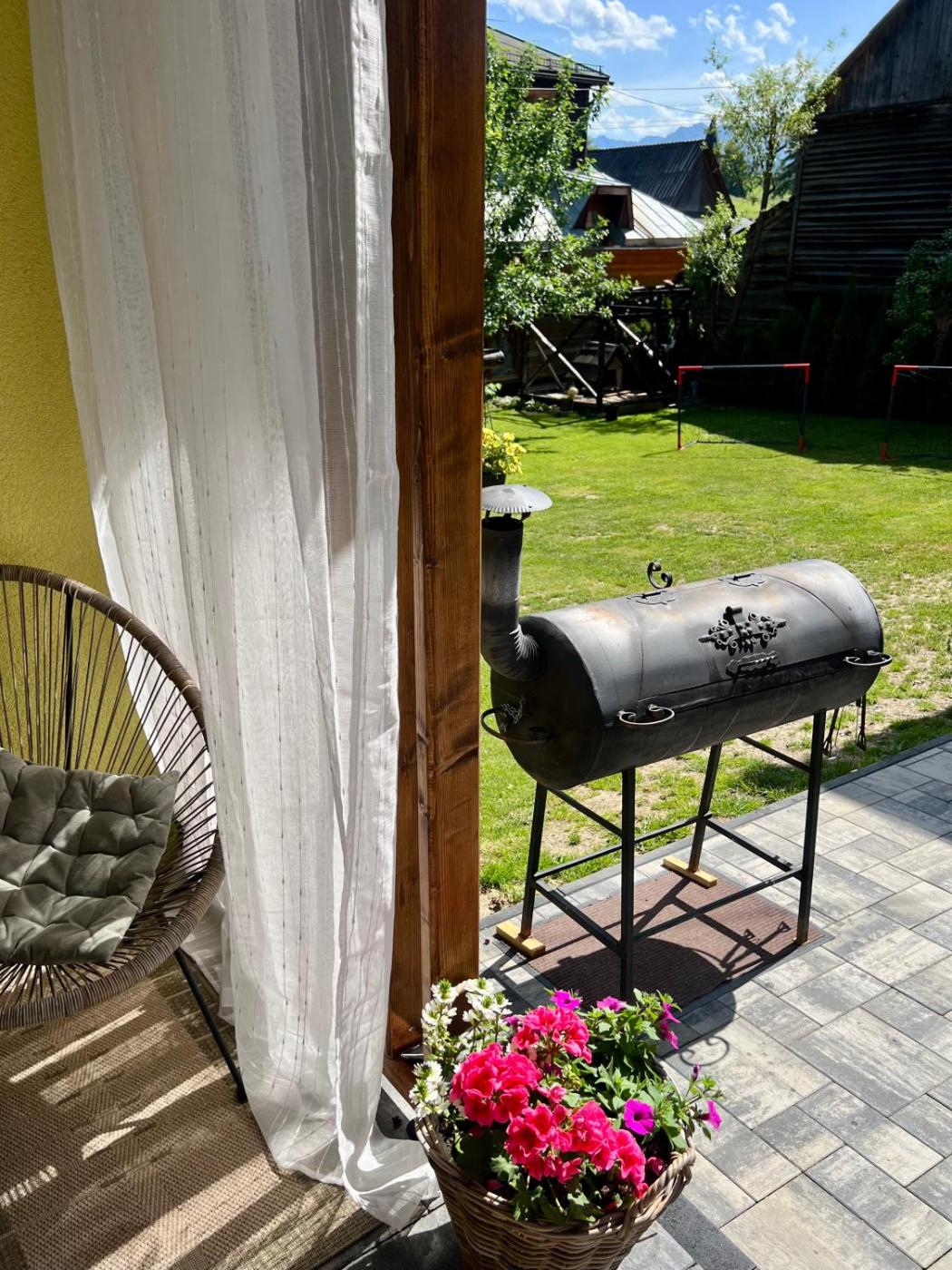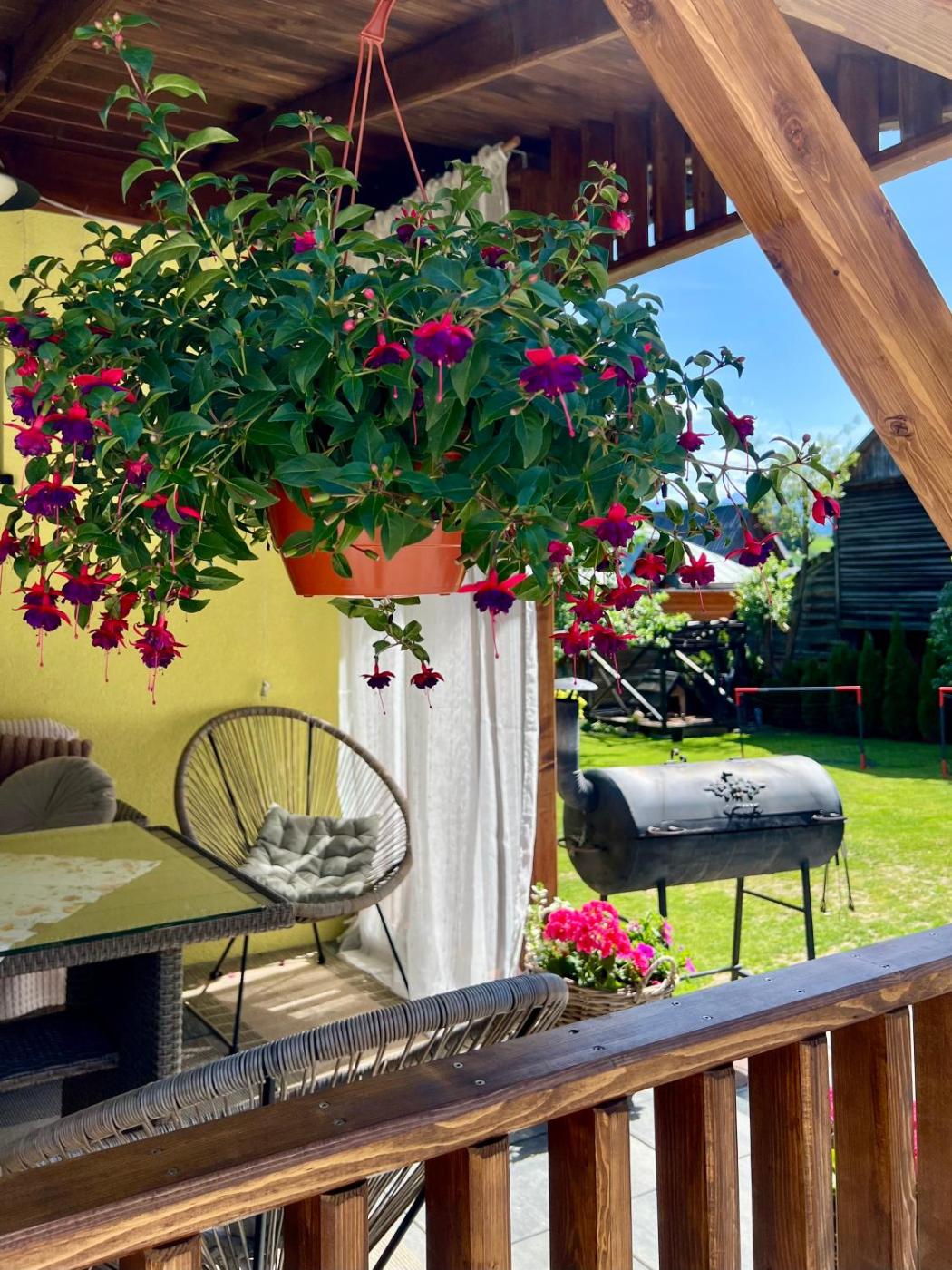 Pokój Czteroosobowy. The quadruple room has a private bathroom, a washing machine, a tea and coffee maker, as well as a seating area with a flat-screen TV. The kitchenette features a refrigerator, kitchenware and a microwave. The quadruple room features a TV, a dining area, a wardrobe, a barbecue as well as garden views. The unit has 2 beds. Pokój Czteroosobowy - 4 osobowy. Powierzchnia pokoju ok.: 16 mkw. ;